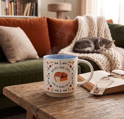 Books And Cats Mug, 18oz, Ceramic